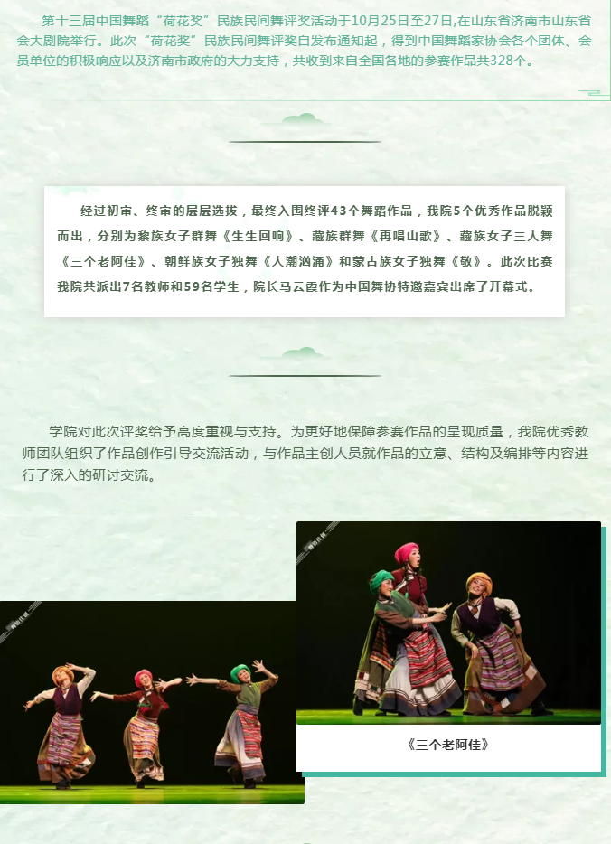 民大舞院参加第十三届中国舞蹈“荷花奖”民族民间舞评奖赛事回顾