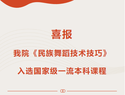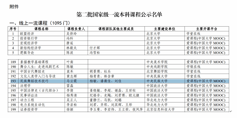 原院长、教授、博士生导师马云霞教授负责,杨敏、潘薇佳、刘佳为主要成员,刘紫葳、马庆玲、金玉仁参与的《民族舞蹈技术技巧》课程成功入选。