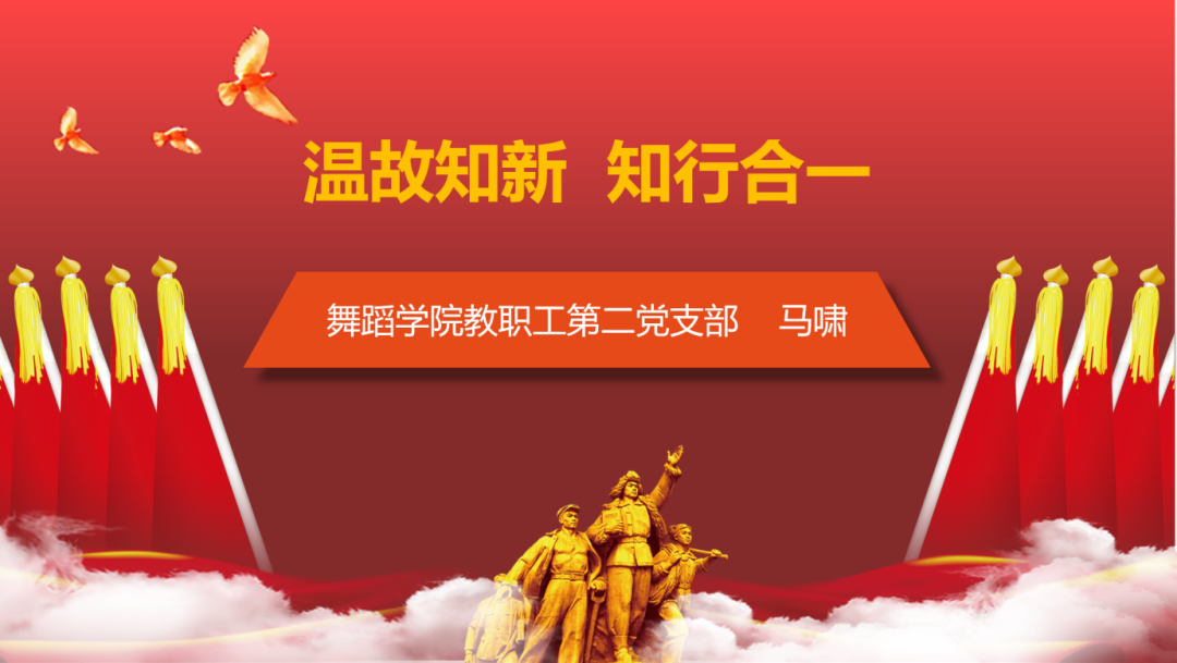 近期进行的“榜样启航新征程”的活动,在党课中,以“温故而知新”——重温我们的老前辈们是怎样在教学工作中为我们作出表率和榜样的。老一辈的教师给我们留下的不仅仅是他们倾其一生的教学实践所编创的教材,更宝贵的是教材背后他们的精神、理念、思想。我们不仅要将他们的精神传递下去,还要将他们所积累的经验提升至理论的高度,而非在教学环节中复制粘贴,只有这样才能够对我们的舞蹈学科作出一定的贡献。