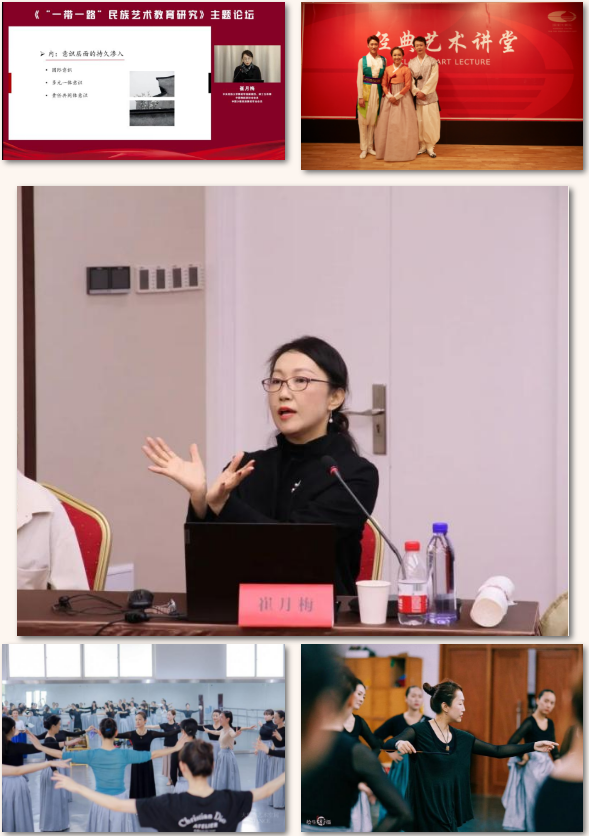 她深知自己不只是一位民族舞蹈教育者,更是民族舞蹈文化的传播者,所以也特别重视大众舞蹈文化教育,切实民族舞蹈文化在全国范围内的发展情况。基于丰富的教学与创作实践,她在反思中有意识地将理论学习与实践经验相结合,不断突破、更新对民族舞蹈文化的理解,渐渐形成了自身对民族舞蹈教学的理念及对舞蹈文化的认知,从而更加清晰如何通过教育的力量传播、传承民族舞蹈文化。她曾受邀参加“一带一路”民族艺术教育创新发展高峰论坛,受北京舞蹈家协会、中舞联盟、上海纽约大学、中央芭蕾舞团、中国歌剧舞剧院、安徽花鼓灯艺术研究会、民大讲堂等邀请,进行朝鲜族舞蹈、苗族舞蹈的教育研讨与教学指导,以努力满足不同城市、不同群体对民族舞蹈的文化需求。并且不止纵向继承本民族文化,也会横向承担着其他民族的教育责任,以求在一种共同的文化接受和文化认同的心理基础上,在一种“美人之美”的文化态度中,更好地实现民族舞蹈文化的“美美与共,天下大同”。