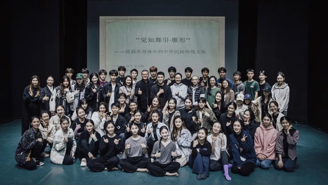 讲座伊始,同学们带来一场犹如“雁形”般“俯仰于天地,遨游于山水”之间的舞蹈展示,让在场观看、聆听与思考的老师和同学仿佛置身于中国传统文化“空寂幽玄、自由浪漫”的美学意境当中,感悟到古代天人合一的传统哲学思想。