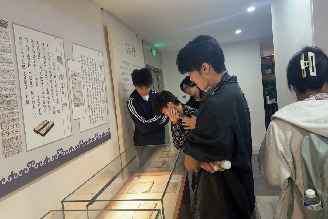 首站抵达图书馆,知识海洋让大家流连忘返。从泛黄的古籍到珍贵的影像,同学们在书页与照片间穿梭,尤其在看到国家领导人与中央民族学院的历史合影时,无不感到与有荣焉。