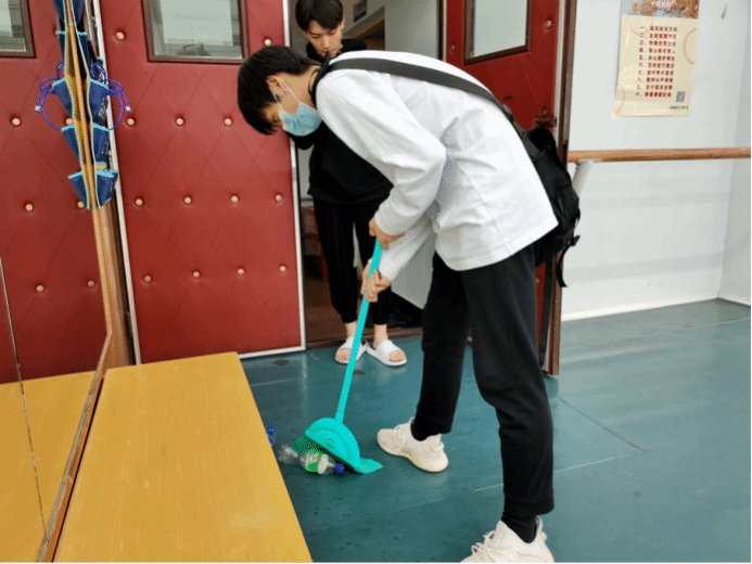 团委积极组织开展大学生劳动教育实践活动。同学们拿着劳动工具在宿舍楼、10号楼、18号楼等地穿梭。扫地、拖地、倒垃圾、整理资料……劳动的身影在阳光明媚的校园里焕发着青春的活力。