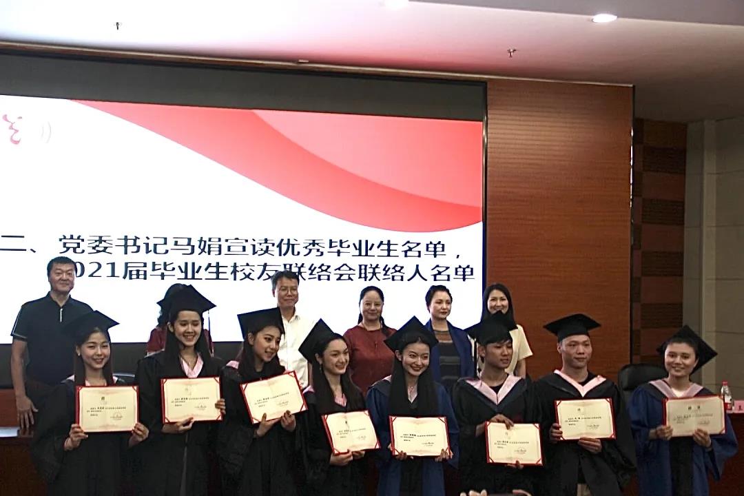 党委书记马娟首先宣读了2021届荣获北京市、校级优秀毕业生名单。随后,马娟书记宣布了校友联络会联络人名单,希望联络人们能够承担起自己的责任,在毕业后成为母校和毕业生沟通的桥梁。
