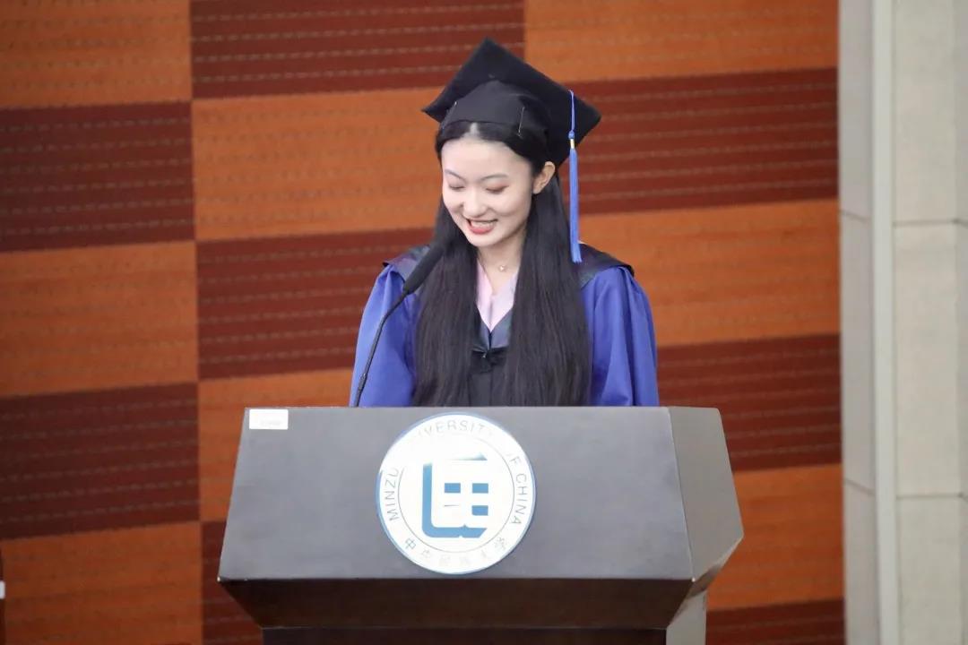 非毕业班学生代表胡斯勒祝福所有的毕业生迎着阳光,披荆斩棘,勇敢地飞向心中的梦想之地。本科生毕业生代表韦思琪、研究生毕业生代表雷雅蘭表达了对母校、对老师的深深眷恋和感激之情,同时祝愿母校永葆青春、桃李天下,同学们前程似锦。