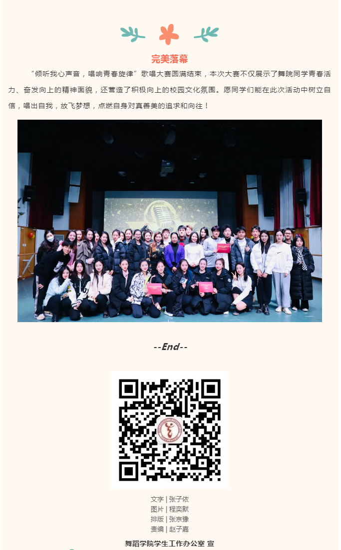 激动人心的比赛正式开始,选手们各展歌喉,在舞台上大放异彩,给在场观众带来了一场视听盛宴。整场比赛高潮迭起,掌声不断,选手们带来的优美旋律和充满魅力的表演台风深深打动了每一位观众的心,这不仅仅是参赛者的历练更是观赛者的享受。同学们以热情饱满的精神,声情并茂的歌声,展示着自己的风采,抒发着热爱祖国、热爱生活的豪情!