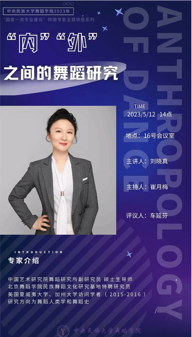 组织开展的“国家一流专业建设”特邀专家主题讲座——《‘内’‘外’之间的舞蹈研究》在16号楼会议室顺利举行。本场讲座由中国艺术研究院舞蹈研究所刘晓真副研究员主讲,本院教师和研究生参加了此次讲座。此次讲座立足当今舞蹈学科的发展使命,以开放性、整体性和前沿性的知识结构,为大家带来更为多元的思考与新见。