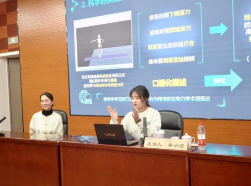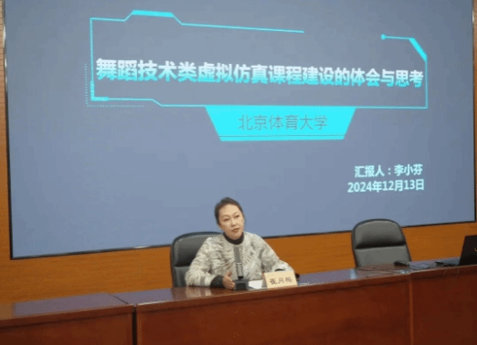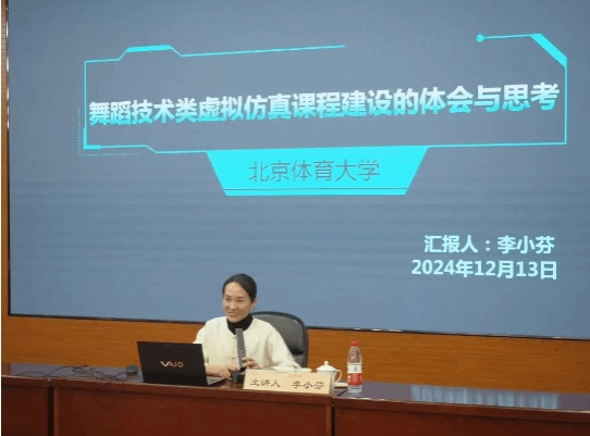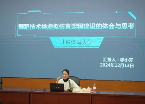 第三部分,李小芬教授向老师和学生们介绍了为进行虚仿课程建设而分析的医学类、工科类的真实案例,接着李小芬教授的硕士生通过“四位转”的案例分享说明了课程运行的具体流程,强调了虚仿课程运用过程中专业术语对舞蹈教学准确性的重要性,并展示了虚仿课程线上线下的运行现状。