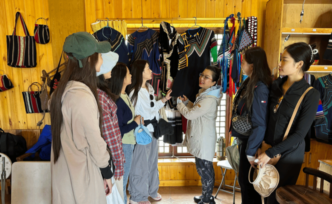 期间,沙呷阿依教授还亲自向2021级研究生们介绍了彝族服饰上羊角纹、火镰纹、窗格纹等精美的刺绣图案,并帮助大家一一辨认了昭觉、美姑、甘洛、普格等地区彝族服饰的不同样式风格,使调研团在领略彝家刺绣的精湛技艺的同时,进一步了解了凉山彝族地区的多元服饰文化。