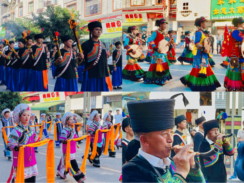 8月13日,调研团来到采风第三站——被誉为“彝地之首”的甘洛县。甘洛是南方丝绸之路和茶马古道的必经之路,是凉山州的“北大门”,也是汉、藏、彝混居之地,多民族聚居的历史背景使甘洛具有多元的文化态势。调研团观摩了甘洛县“朵洛荷”选美活动、火把节晚会、民俗文化游行展示等各项活动,还品味了甘洛特色美食“九大碗”,认识了甘洛地区彝族、尔苏藏族等其他民族的特色服饰和建筑。