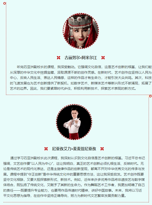 通过此次课程,学员们深刻认识到优秀文艺作品在文化发展工作中的重要作用,文艺创作要以人民为中心,坚持弘扬中华优秀传统文化、讴歌时代精神,更要在创新实践中发展,不断拓宽国际视野,用心讲好中国故事。石亚洲副校长表示,学员们作为新疆地区基层文艺工作者,鼓励大家要肩负起责任,为发展文艺事业、建设文化强国做出贡献,为推动中华民族伟大复兴不懈奋斗。