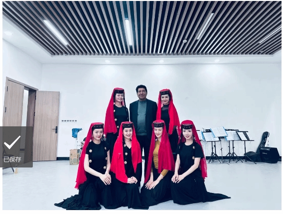 古丽米娜教授带领采风小分队来到塔县文工团,不仅观摩了塔县文工团舞蹈队的专业技术能力提升培训课,还带来不同民族的舞蹈作品与文工团演员进行交流学习。同时古丽米娜教授为文工团演员编创舞蹈作品《晨曦中的玫瑰》,该作品也即将在70周年县庆的舞台上精彩绽放。采风小分队拜访了原塔县文工团团长木巴日克卡旦木•塔布力迪老师,他详细的为学生们解答了关于塔吉克族舞蹈相关理论及实践方面的疑惑,同时也教授了塔吉克族步法、恰普苏孜和买力斯等组合,让同学们深刻感受到民族舞蹈的魅力。