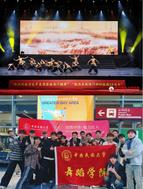作为一名民大学子,我有幸在赵松老师的带领下,通过群舞《大河之子》参加了庆祝澳门回归25周年“澳韵华章 共庆盛世”高校联合文艺展演。此次展演是一次多元文化的深度交融。来自不同高校的学子们汇聚一堂,各自带着独特的文化底蕴与艺术风格。这种多元文化的碰撞,不仅拓宽了我们的艺术视野,更让我们深刻体会到文化包容与交流的重要性。