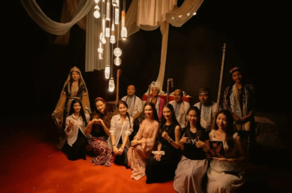 转赴喀什地区莎车县后,实践团将学习重点投向了被誉为“维吾尔音乐之母”的十二木卡姆艺术。在木卡姆文化艺术中心,观看了演出《风中木卡姆》,为其巧妙的结构、深邃的情感与精湛的技艺所感动。尤为珍贵的是,团队有幸与十二木卡姆国家级非遗传承人于苏普·托合提、喀群赛乃姆国家级非遗传承人伊敏江·伊比拉,以及优秀传承人木拉卡地儿、吐尔孙江等大师进行了面对面请教与交流,还与导演郑老师探讨了此剧的创办初衷与经历,让同学们对这项伟大的艺术有了极为深刻和立体的认识。